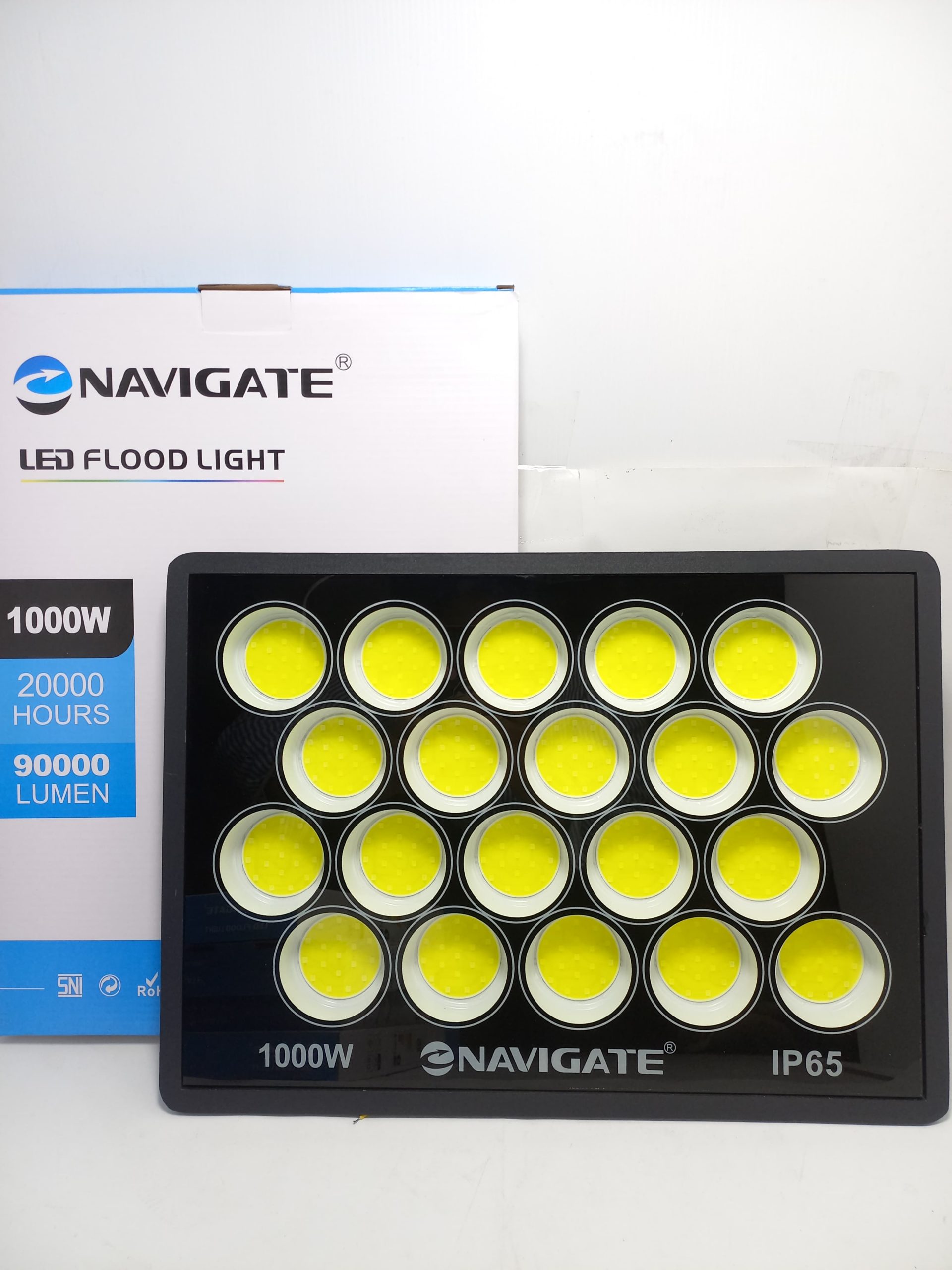 Merupakan lampu sorot LED tipe floodlight Dovelite dengan model LED COB ( Chip on board ) dengan konsumsi daya 1000 watt , body lampu menggunakan material aluminum powder coating berwarna hitam dengan proteksi IP 66